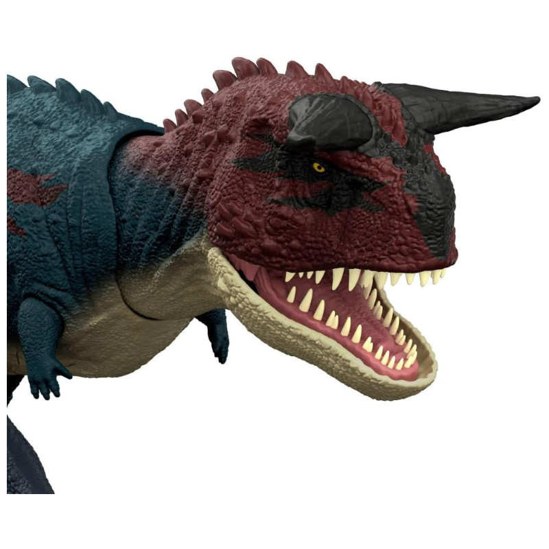 ¡Sumando! Con 17.1 pulgadas de largo y 7 pulgadas de alto, con sus cuernos distintivos, este Carnotaurus será una excelente adición a cualquier colección de Jurassic World para fanáticos de 4 años en adelante.